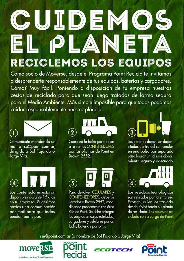 Point Agente Oficial Personal, una empresa comprometida con los recursos naturales, cuenta con el Programa Point Recicla, una iniciativa de Reciclado de material tecnológico.